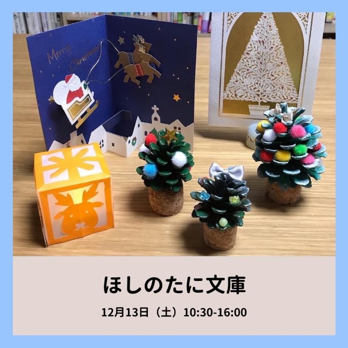 松ぼっくりのクリスマスアートを作るワークショップを実施予定です。